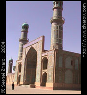 Двинувшись от “Мовафака” на восток, вы ничего интересного не увидите, кроме красивых деревьев, которыми усажена улица, и консульства Ирана минут через десять. По пути будет несколько уличных шашлычников, без будок, просто мангал стоит на тротуаре. Теоретически, в конце улицы должен быть парк и дом правительства. Дойдя, однако, до первого перекрестка, поверните направо. На этой улице будет переговорный пункт на левой стороне, а потом и поворот к Пятничной мечети. К ней можно также попасть, если от “Мовафака” сразу пойти на юг.