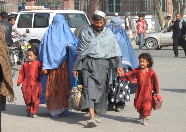А некоторые одеты почти по-европейски. Но с платком и в пуштунской шапке.