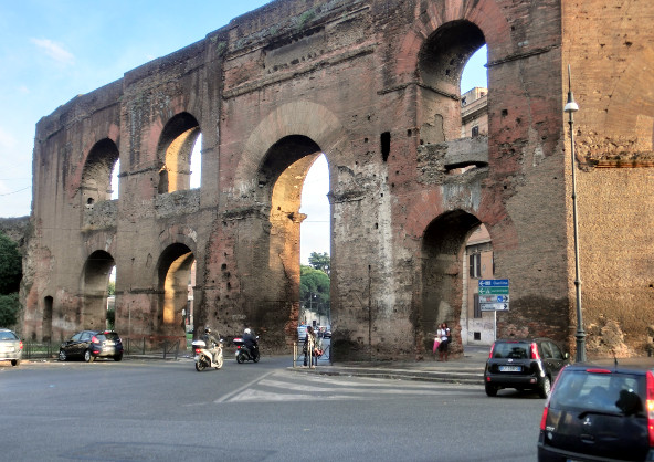 Часть Аврелиановой стены. По ее верху проходил водопровод. Точнее, сначала был построен водопровод-акведук, а потом его арки застроили, и получилась стена.