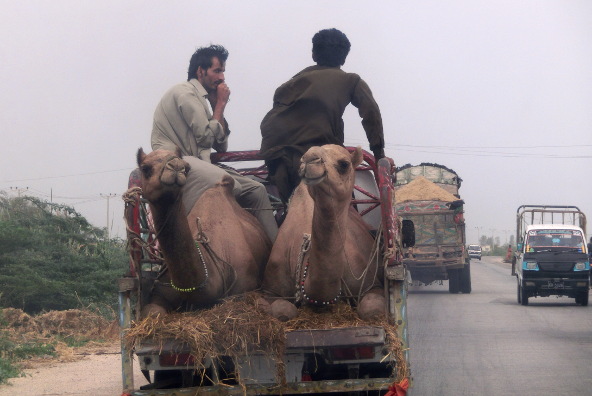 Два верблюда. Они даже головы как-то одновременно поворачивали.