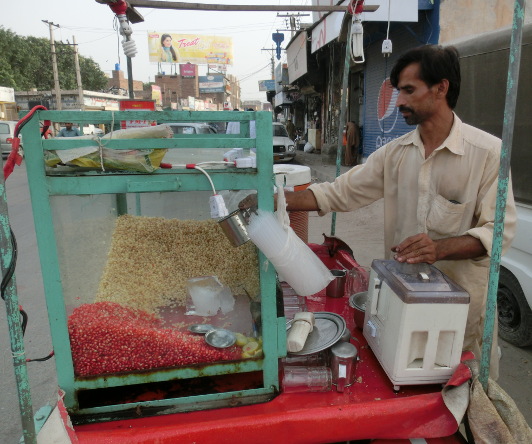 Жмут гранатовый сок. Можно из белых зернышек, а можно из красных. Соответственно доллар и полтора за поллитра. Можно сделать смесь. Белый — кислее. Очень вкусно.