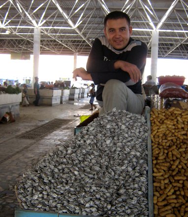 Рынок в Ургенче. Соленые абрикосовые косточки. Их пекут в золе, а потом надкалывают специальным молоточком.